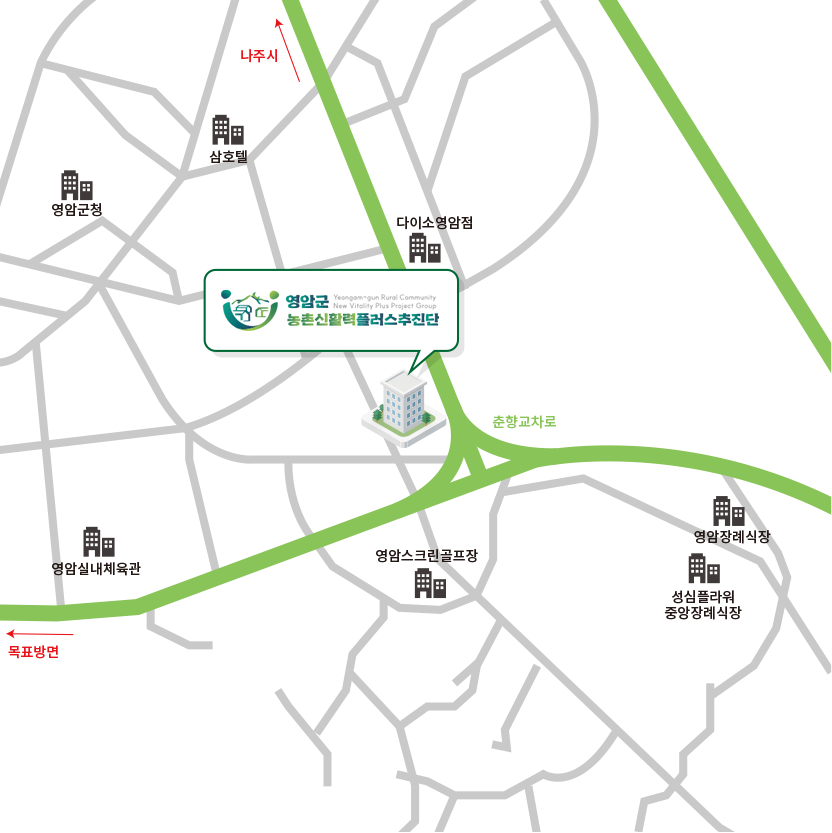 영암군 농촌신활력플러스사업 추진단 오시는길을 알려드립니다.